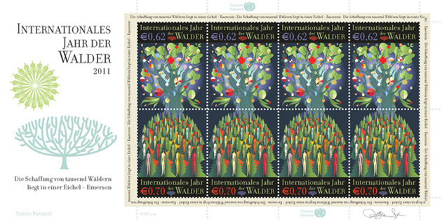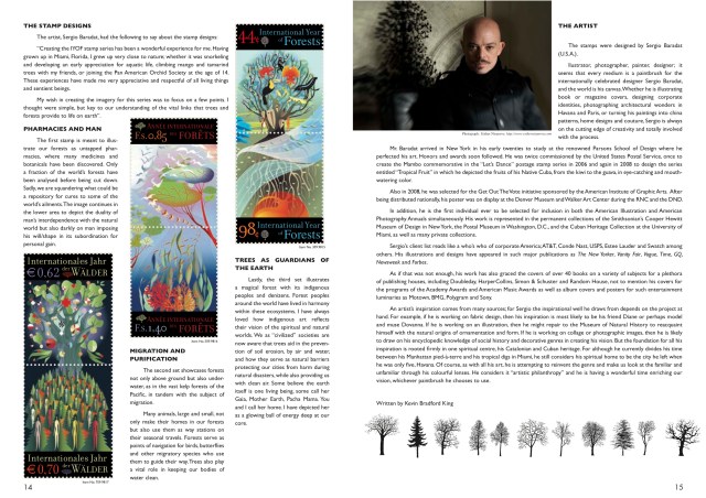 On October 13th 2011, The United Nations will unveil a series of postage stamps commemorating The International Year of Forests, created by Sergio Baradat. “I loved working on this project and am thrilled with the final product.”, says Baradat.