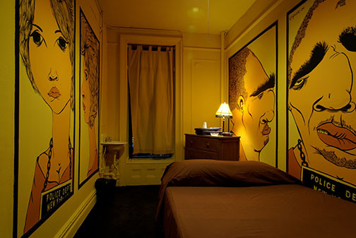 “David Cooper encompassed and exceeded all of our expectations of what a Carlton Arms artist should be. David is extremely talented in all areas related to art. He’s a fun and amazing visual artist, intelligent and engaging. He works very well with staff and other artists going beyond his duty of imposing his vision on our walls. His first project was doing a room with other artists, big egos can get crowded in a small room but charm, good humor and a willing and helpful hand go a long way. David also “gets” the hotel art project and continues to participate in our vision. I am very fond of David and his work and am proud to consider him a friend.” – John M Ogren, Manager, Carlton Arms Hotel