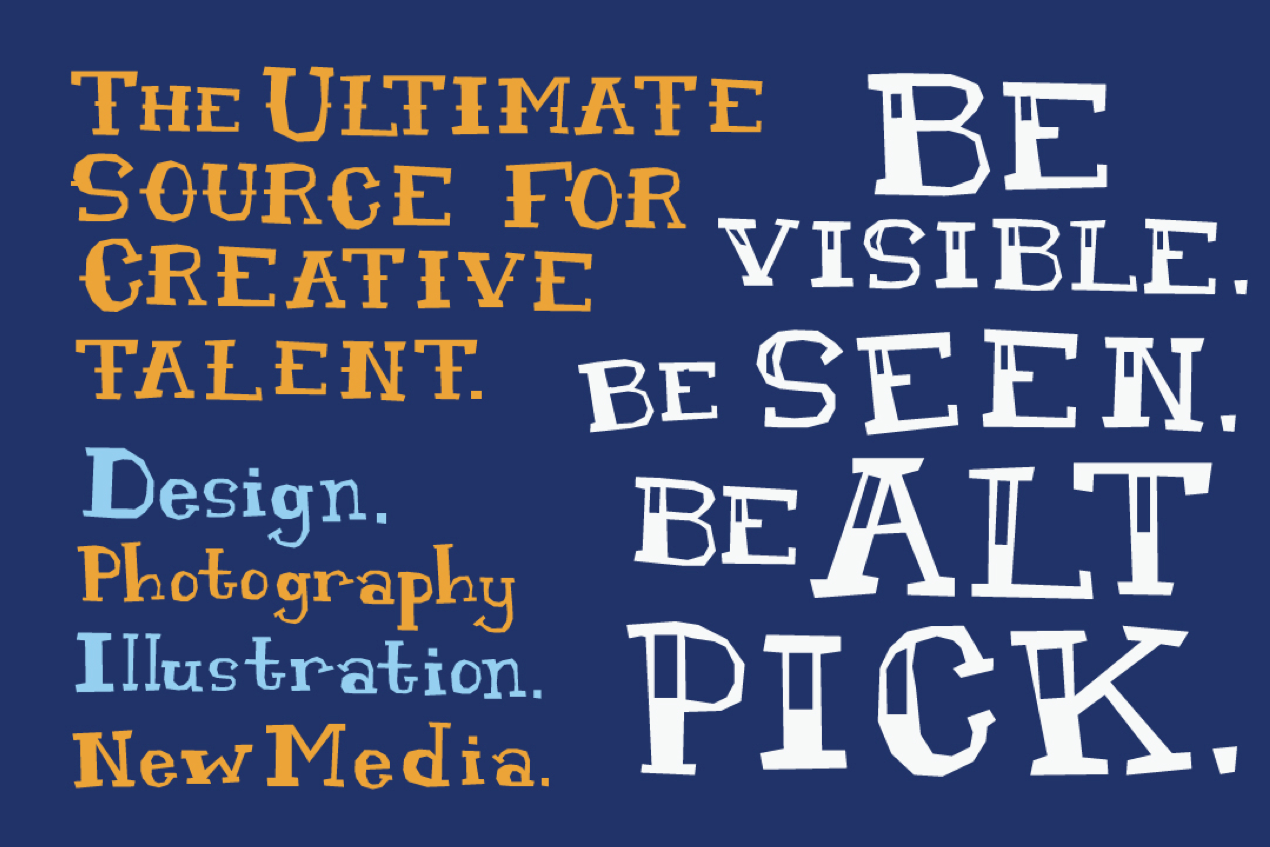 Ashley Mercer‘s type treatment prominently displays ‘Altpick.com’ and the circus theme is a fun way to get someone’s attention.