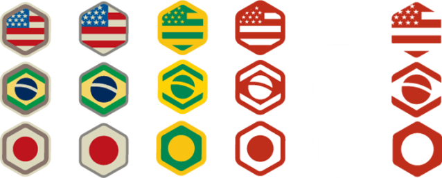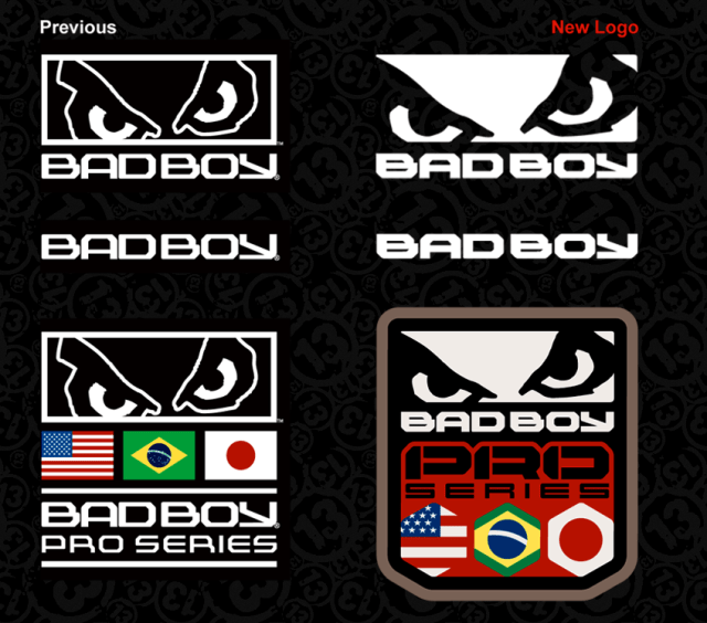 The credibility, roots and international involvement of BAD BOY in MMA were important aspects to identify and design into this mark. The flags of the U.S., Brazil and Japan in the mark remind the consumer that BAD BOY is a credible global MMA brand with roots in these nations of fighting origins. By stylizing the flags into more abstract interpretations, these icons of flags became an ownable part of the BAD BOY Brand and what would have been just a typical ubiquitous flag is now recognizable only to BAD BOY. These icons were designed to be used in an assortment of configurations and have become integral elements used throughout all branding of equipment, apparel and accessories design along with collateral, packaging and all levels of promotion.