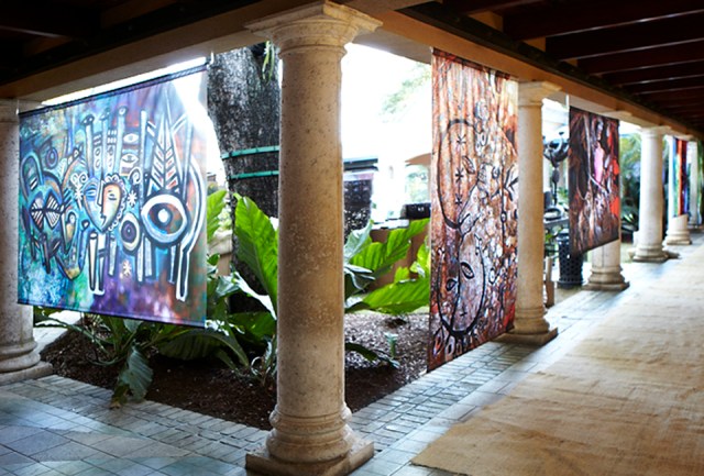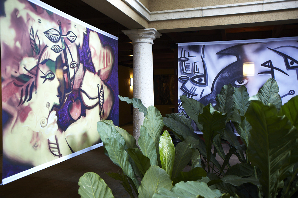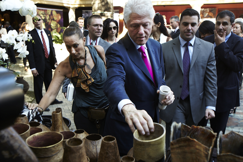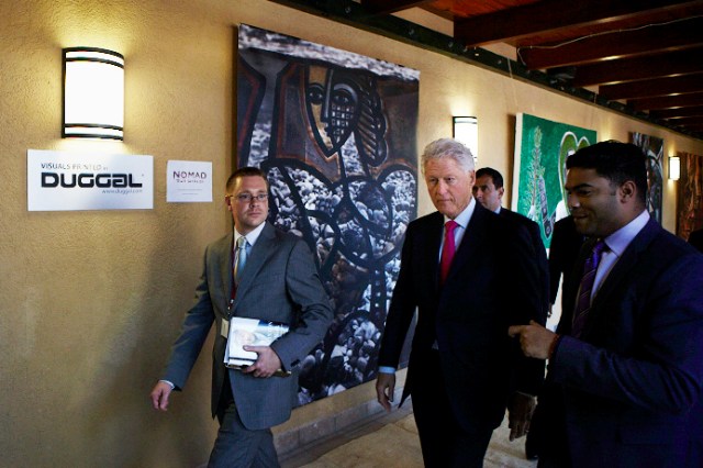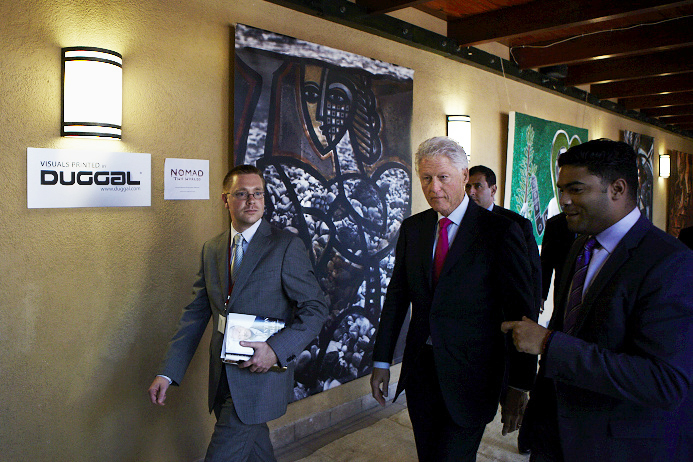 In November 2011, the Clinton Global Initiative invited Nomad Two Worlds and UrbanZen to create an outdoor exhibition of the artworks they created with Haitian artists as part of their “Invest in Haiti” forum organized by CGI, Inter-American Development Bank and the Government of Haiti. James who has been running Nomad Two Worlds as a non-profit organization turned to my son, Mike Duggal for assistance in reproducing these artworks for the exhibition. Given the opportunity to assist the rebuilding and economic empowerment of Haiti after the devastating earthquake, my son and I were only too eager to help Russell in any way we could. We digitally reproduced all of the 30 works of art on large format fabric through a dye-sublimation process in which the image gets permanently transferred to a substrate making it perfect for outdoor conditions while retaining the pictures’ high resolution. The pictures were hung like paintings across the periphery of the forum’s venue. “The combination of our images and Duggal Visual Solutions’ high quality printing brought a beautiful array of color, style and design to the exhibition that President Clinton felt was an important visual component to the forum,” stated Russell James.