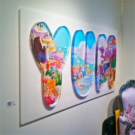 Chessa Ferro at Duggal worked with artist Jessica Lichtenstein to create several pieces for Scope Art Fair and Gallery Nine5. Lichtenstein uses hyper-sexualized Japanese figurines in her work to entertain and give the figures a deeper meaning.