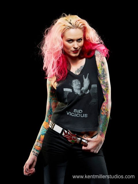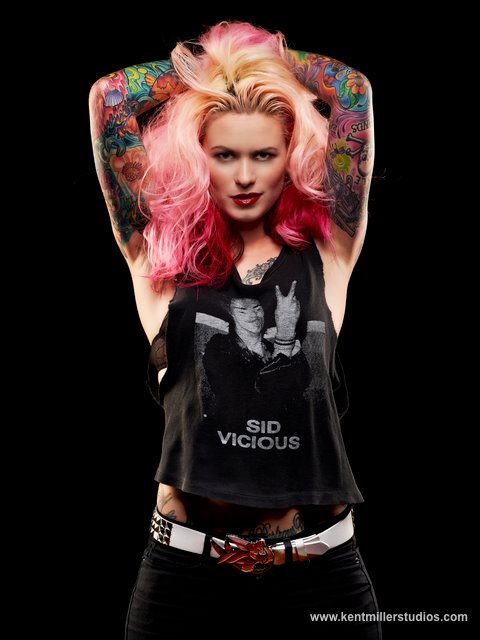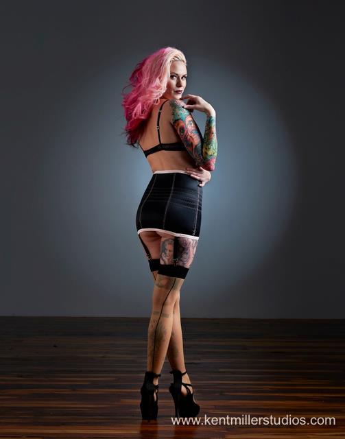 When photographer Kent Miller first met Azarja at an Inked Magazine party he knew they had to shoot together. “She was down for it and my MUA Johanna set it up,” says Miller. “We just wanted to make a few clean colorful shots for us to promote our work.”