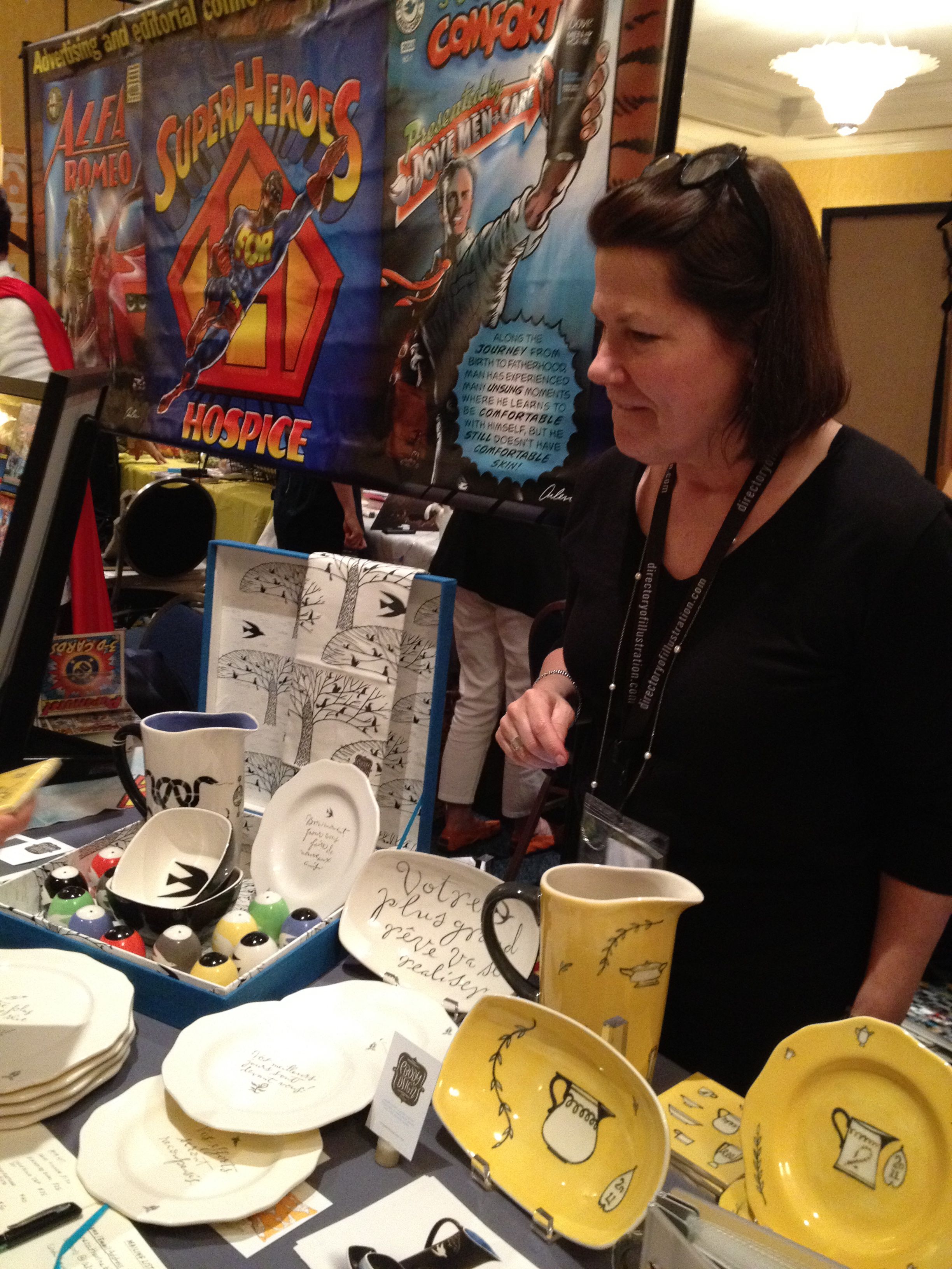 The Rhode Show Bazaar Marketplace was packed with visitors checking out all of the wonderful work. Whitney Sherman is displaying her limited line of dishware.