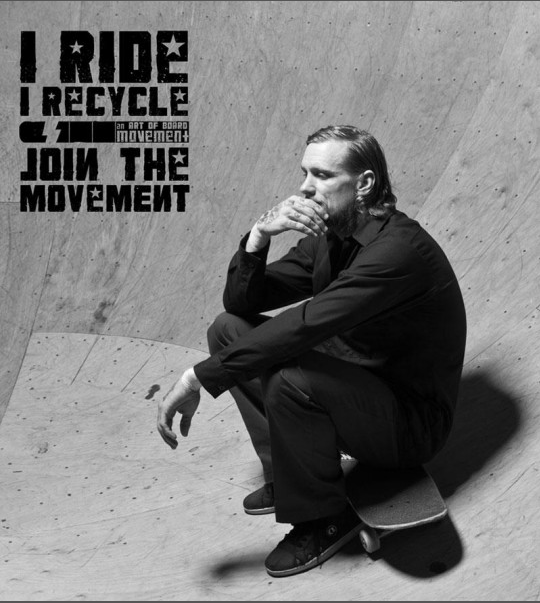 Landry Major shot legendary skateboarder Mike Vallely for the “I Ride I Recycle Ad Campaign, An Art of Board Movement”. The national grassroots skate deck recycling movement main mission is to protect the environment by keeping broken skateboard decks and manufacturer wood waste out of the landfills. Some of the solutions are to reuse wood waste, broken decks, manufacturer scraps and irregular and unusable boards to create wall and surface tile.