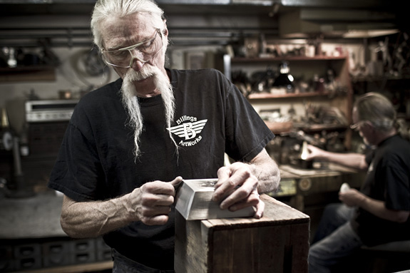 Photographer, Tadd Myers was inspired by his father, Landis Wilson Myers, to document and tell the story of the American Craftsman. His father worked as a wood worker, home builder, metal worker, guitar player, printing pressman, baseball player and self-made business man. “My father loved working with his hands and would have felt a very deep connection to this project.” To continue, Tadd adds his 20th installment to the American Craftsman series. This time it’s John Billings of Billings Artworks in Ridgway, Colorado. Mainly known for creating the beautiful sculpture for the music awards, The Grammy.