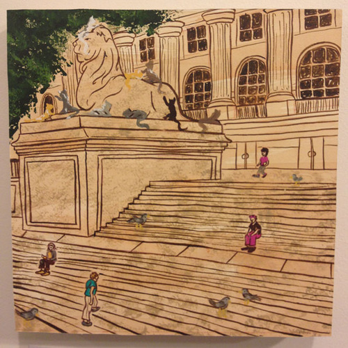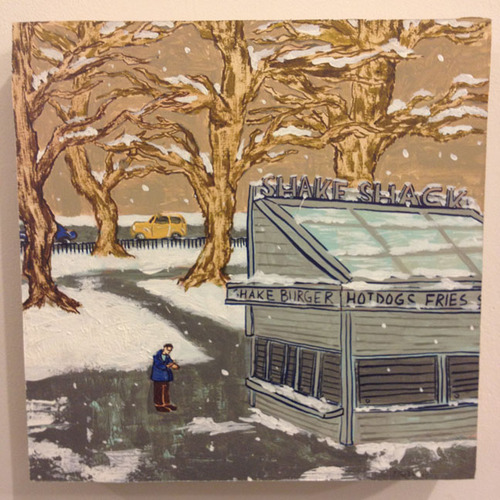 Daniel Fishel is part of a group exhibition of the top 25 illustrators under the age of 35 at the Fowler Arts Collective, sponsored by the Society of Illustrators. The group show is called Eye Candy, and all of the artwork revolves around the artists’ guilty pleasures about living in New York City. “My guilty pleasures are more things I hate about the city. Like why can’t I get Shake Shack in the winter time or why does the NY Public Library smell so bad or why can’t I camp out in Central Park?”