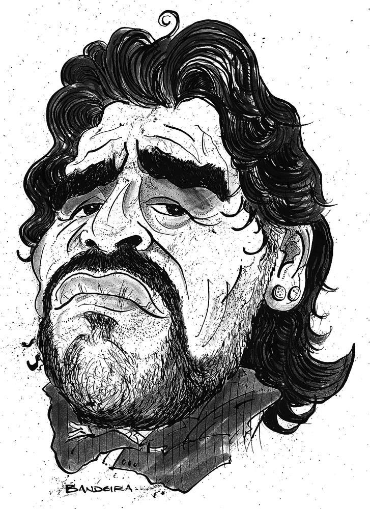 GB: Diego Maradona: A caricature of my favourite football player and currently part of an on-going theme. He posesses all the ingredients one needs to do a portrait full of character, charm and attitude. I think it helps sometimes if you are already familiar with the character. The style is relatively carefree which mirrors his personality.