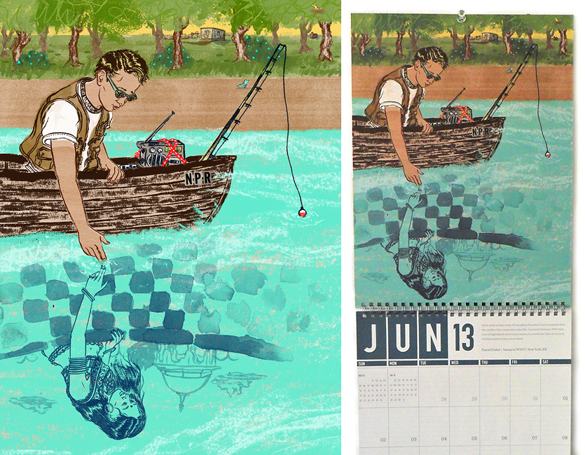 DF: I was asked by the exceptional folks at National Public Radio to make a piece for their 2013 Calendar. The art direction was to make an image that reflected our personal connection with the radio. I was in high school when I started to listen to NPR. For the longest time I wanted to go to college to eventually go back to my home town and make something there. I really didn’t know what. Listening to NPR opened me up to a world out there that I wasn’t aware of and made me want to begin exploring it.