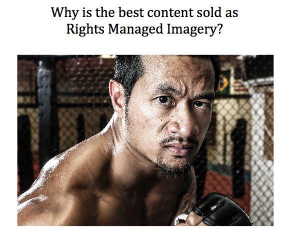 Rights Managed can be the most complicated way to buy images. The pricing is dependent on usage. Usage is defined by geography, media buy, media type, length of usage and if you need image exclusivity. While this might seem complicated, our stock photography providers have made it much simpler than it once was by using online pull down menus and simplified pricing structures. There are a couple of real advantages to using Rights Managed Stock and one disadvantage. The disadvantage is that Right Managed tends to be pricier than the other licensing models but the advantages are: