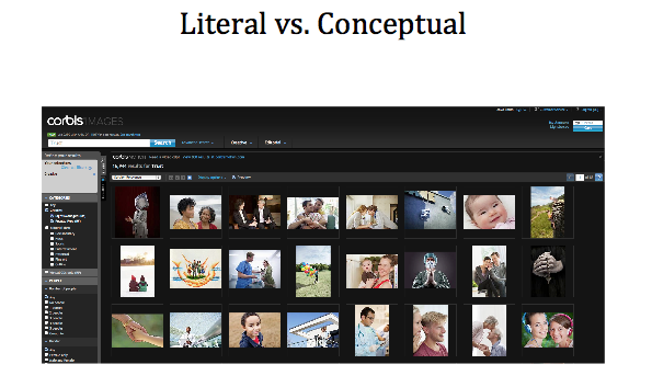 While researching this article, I spoke with the head of search at Corbis. This is the guy who is the expert on image search. I asked him, if I were the Vice President of Marketing at Security Forever Insurance Company, how would I best find images that fit my brand? His answer, “boy, that is a tough one”.