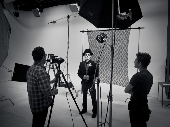 Chris knew that the light had to compliment the mysterious nature of their subjects, so they opted for a combination of a gridded octabank and 10 degree gridded flash head to focus on the light to create the dark and deliberate mood.