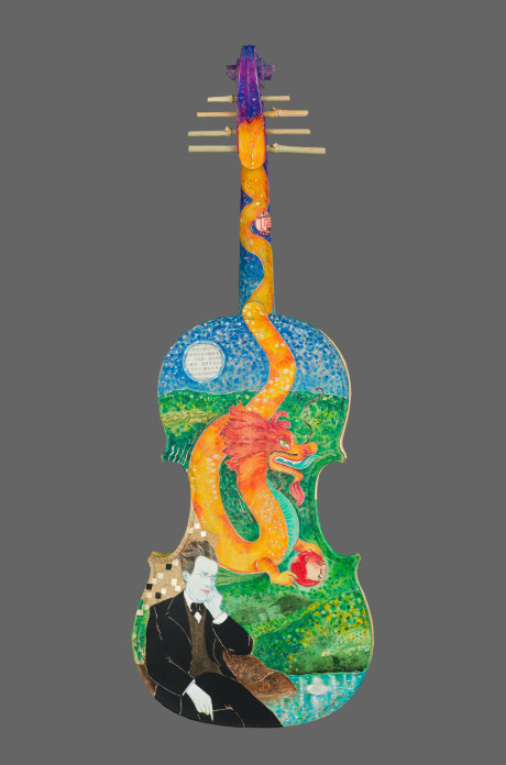 I decided to paint the front of the violin in a Chinese style and the back and sides in a Vienna 1900 style a la Gustav Klimt.