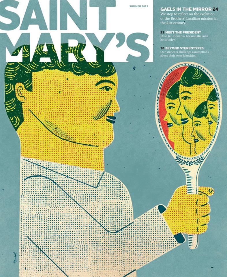 Cover Illustration for St. Mary’s Magazine by David Plunkert; Design Firm Pentagram Texas