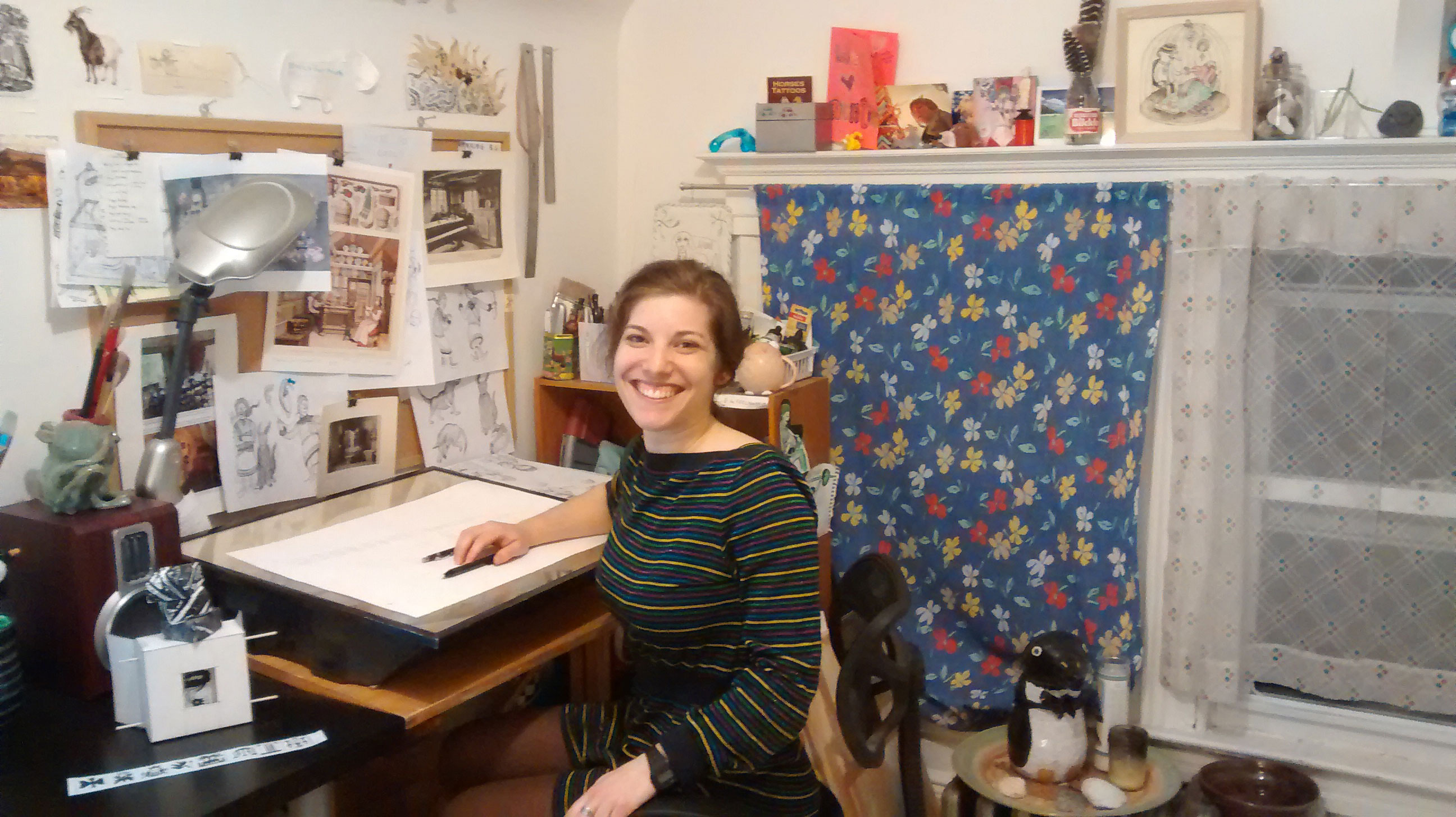 Katrina Kopeloff grew up in chilly southern Colorado, the land of cool sunshine. Her favorite animal is the penguin. As a child, she was exposed to looms, spinning wheels, and goddesses. Katrina now lives in Queens, New York, where she draws under many bridges and railways.