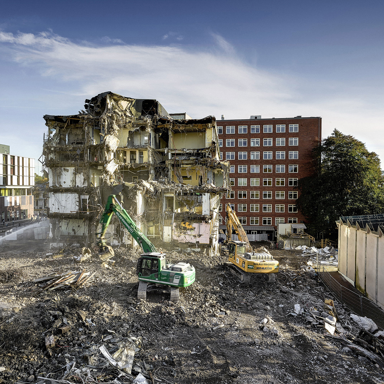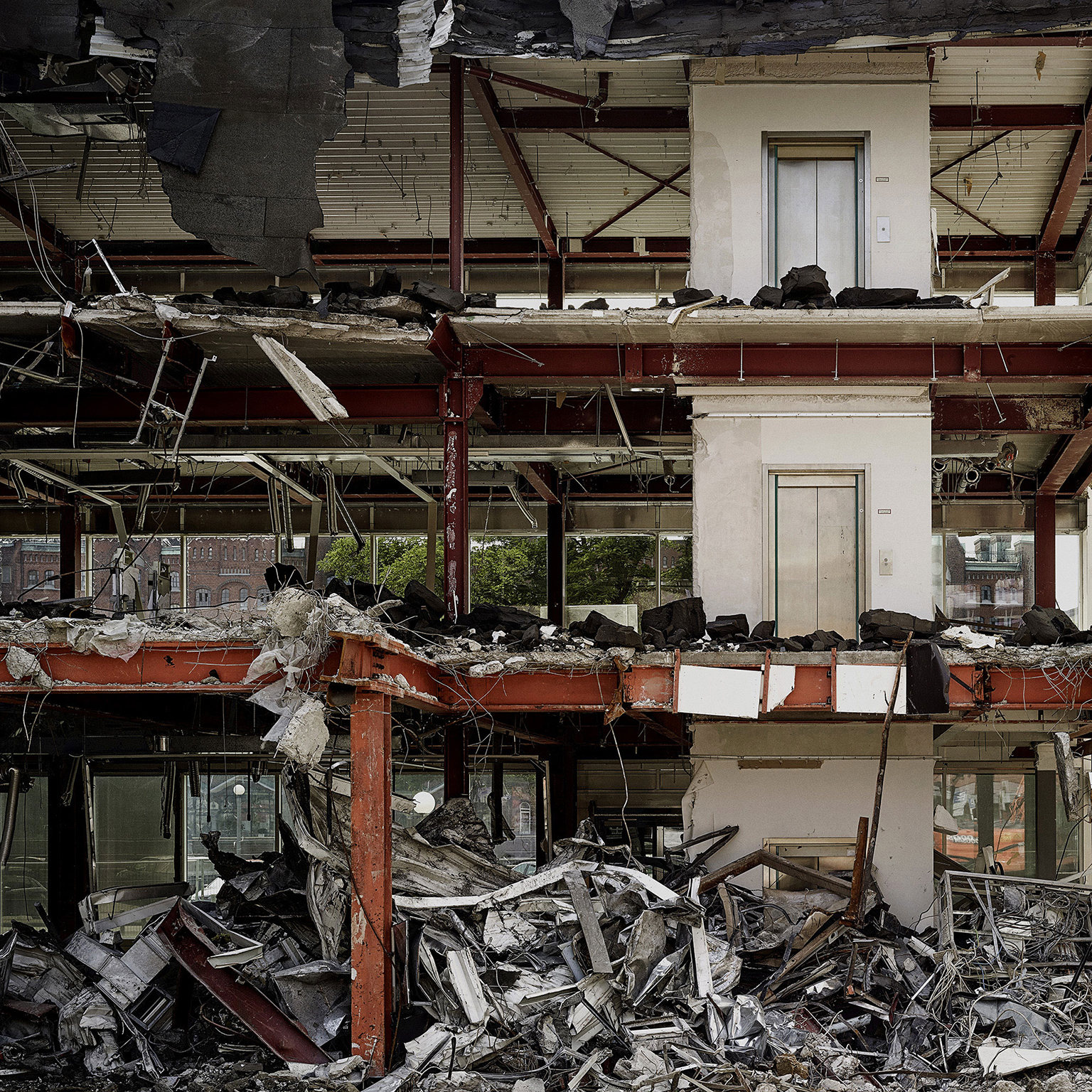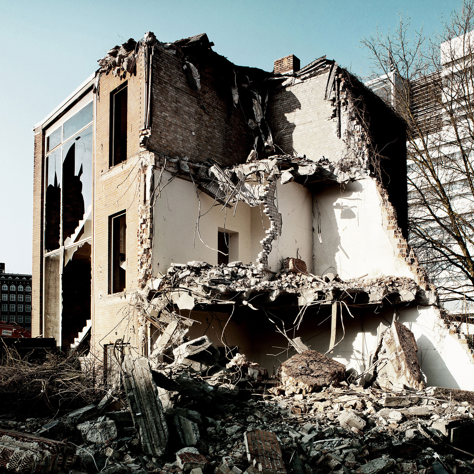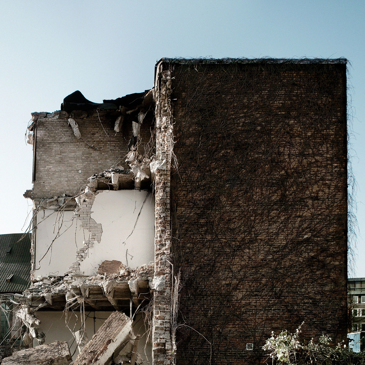 To me a building that was ripped open like the ones in my images looks wounded, lacerated, hurt, torn apart, suffering. That is what I feel when I see buildings in that very state. I prefer to still see a notion of the former inhabitants. Sinks on walls, windows, I like to be able to feel the former presence of the people that lived or worked there. I also like the graphics of open buildings. I don´t photograph ruins or buildings that have been decaying for years and years. I look for fresh, open wounds, hence the name. These buildings are hard to find because often they are gone by the time I get there with my Alpa Max Camera. And usually within a week after I shot there, they are gone for good which is another aspect I like about these photographs.