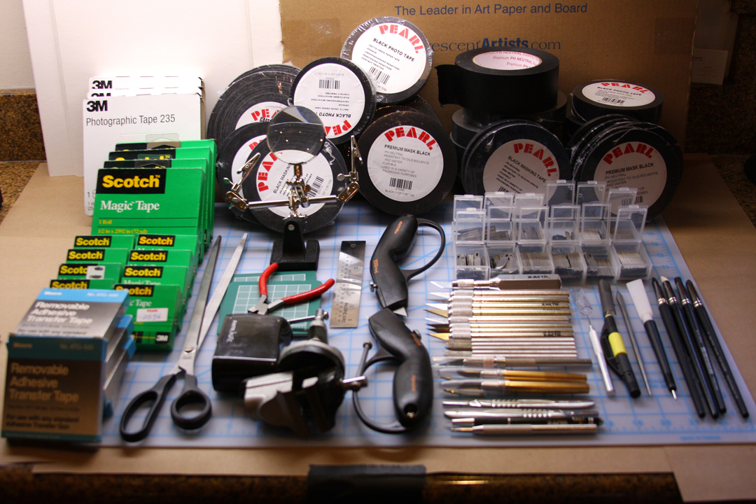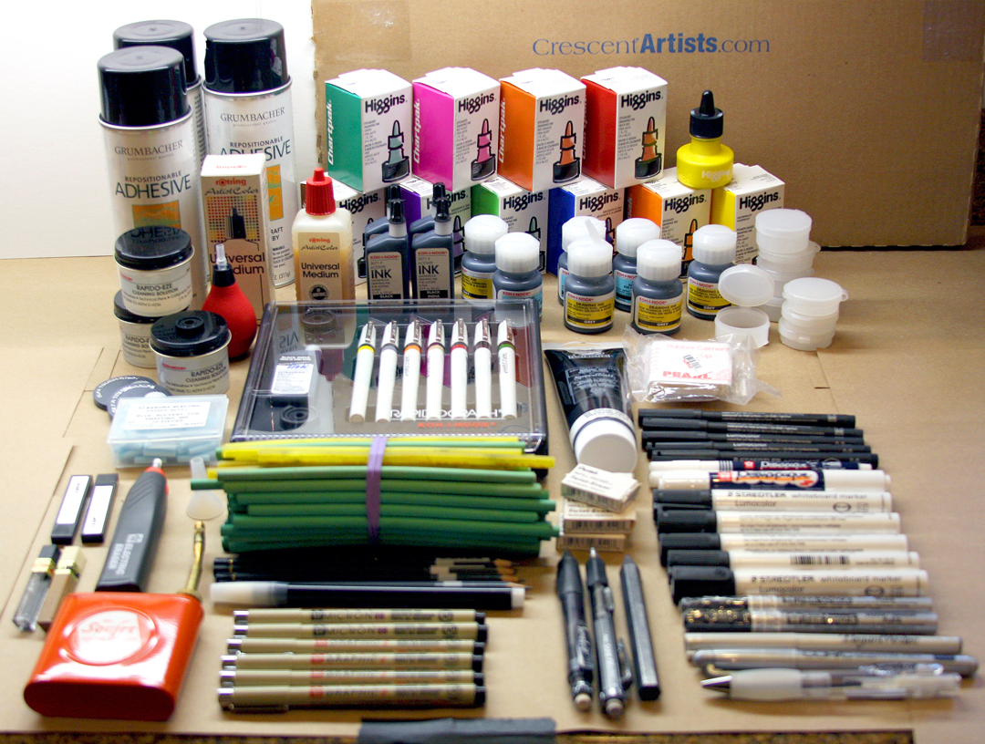 On the first visit, at 40% off, Lacko tested the waters with a few boxes of his favorite blue pencils and then loaded up on the oddities priced under a dollar. He got tape, metal clips, a mechanical waxing machine once used for pasting up columns of printed type before computer graphics rendered the process obsolete. He had no use for an automatic waxer, but at a dollar it seemed a shame to leave it to the landfill. The store’s vast inventory of things no one seemed to need any more may have led to the closing. Selling anything online requires little more than a digital image and an e-commerce website. PEARL PAINT still had a vast and expensive portfolio department long after artists started showcasing their work on the web. The industry moved forward, PEARL did not.