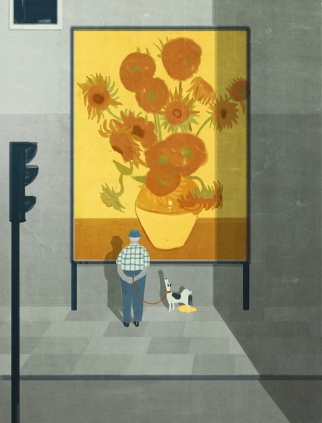 Emiliano Ponzi illustrates for La Repubblica for an article which presents the question does art pieces really change the environment?