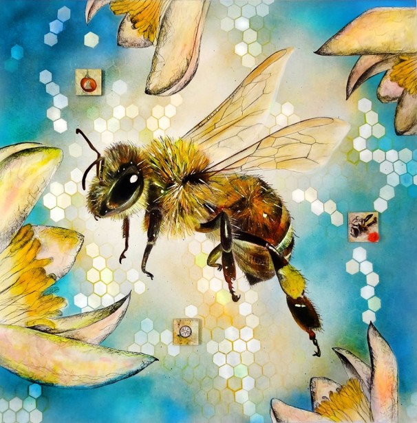 Heather Scholl’s “Salt of the Earth” – Dedicated to the Bees – mixed media on wood