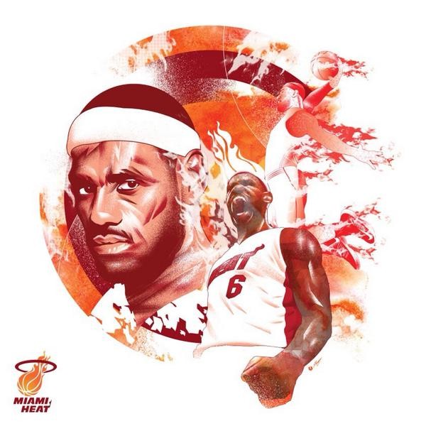 Following his recent move to Cleveland, Guy Stauber illustrates a tribute to Lebron and his time with Miami for Richard Solomon Artist Reps.