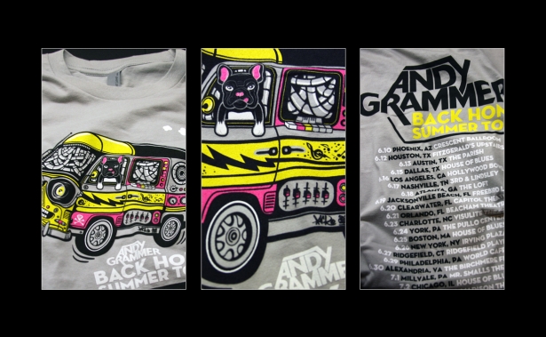 When platinum-selling recording artist Andy Grammer set out on his Back Home Summer Tour, he reached out to Miami artist John Lacko to create the graphics for promotional tees, hats and totes that are such an important part of funding any musical road trip. His management team admired the work Lacko recently completed for Diplo’s Major Lazer project and wanted to capture some of that same energy for Grammer’s promotional gear.