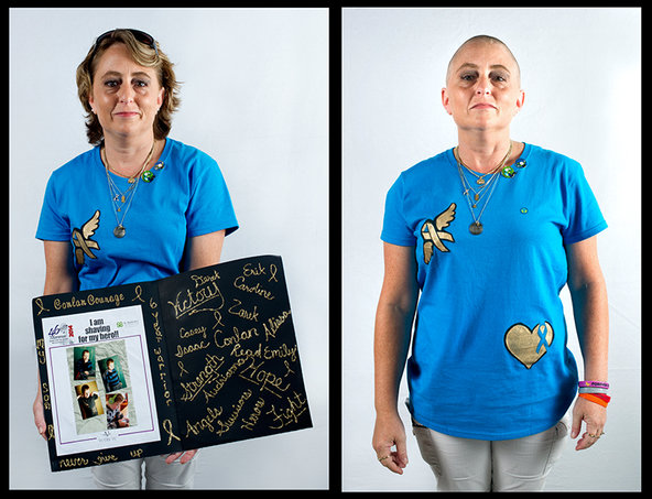 Each weekday, an average of 46 American families receive the unenviable news that their child has some form of cancer. At this event, part of the fifth annual Shave for the Brave Campaign organized by the St. Baldrick’s Foundation, mothers of children affected by cancer shaved their heads in solidarity with their children to help raise awareness and funds for pediatric cancer research as part of the 46Mommas team.