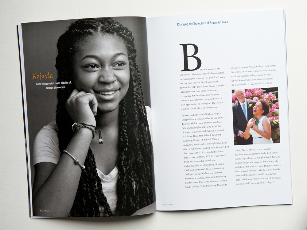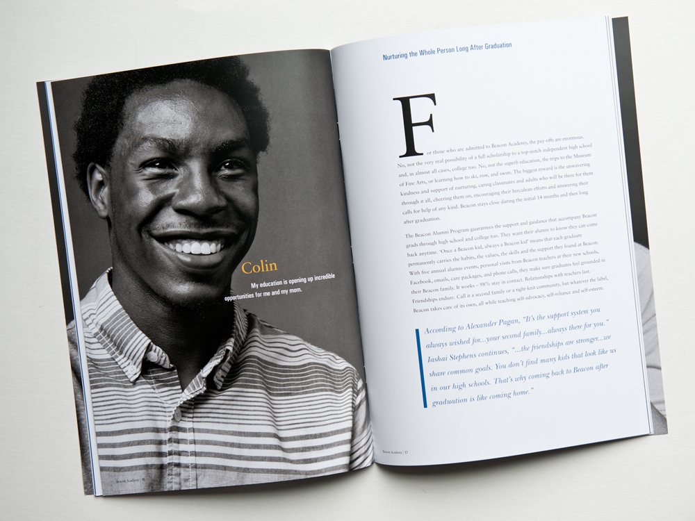 Webb Chappell shoots portraits of students for the over-sized brochure for the Beacon Academy, Boston, MA. The school is proud to claim that it pushing young, smart motivated thinkers to go beyond.