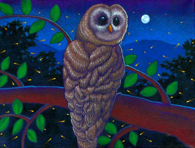 “Spotted Owl with Fireflies” ©Ray-Mel Cornelius