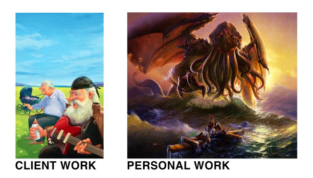 There are artists whose personal work and client work merge, stylistically and in terms of quality. This can undoubtedly be an asset, but it also means their work is depending on trends and a personal brand.