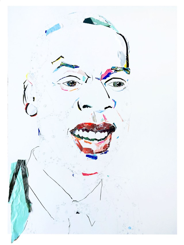 John Dykes’ painting “Carvel and Pinto”, acrylic and collage on mounted board with acrylic resin 2020m 48″ x25″ was created as part of a 1960’s theme series was selected for the American Illustration 39 book.