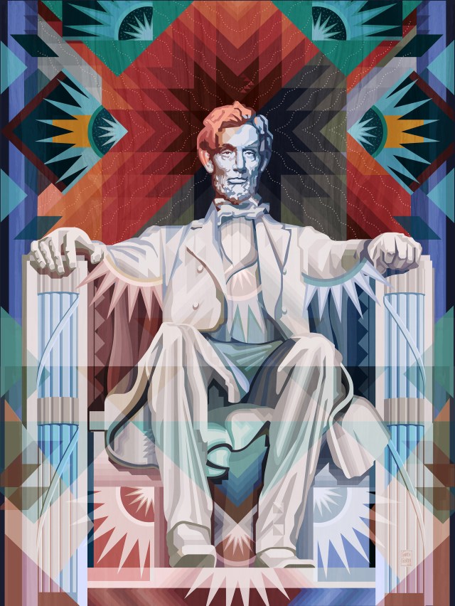 “Freedom’s Gaze” is informally dedicated to the spirit of liberty and freedom we are struggling to achieve for all Americans. This illustration of Lincoln seems like a celebration of our country’s determination to overcome all challenges”. — Garth Glazier