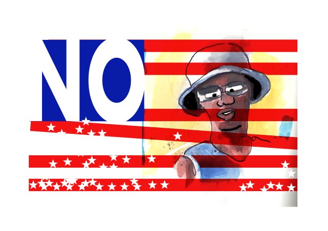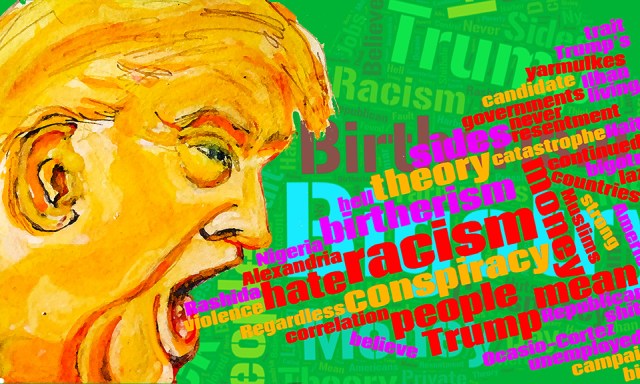 Kimberley Wiseman calls this image, “Spewing Hate”, these are actual phrases and words Trump has used in his lifetime and has said publicly. “Societies that preach hate are where people no longer know how to live”. — Lamine Pearlheart