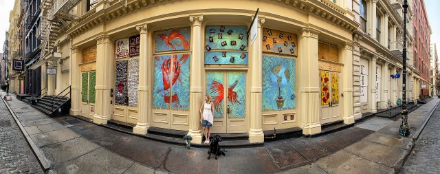 Keith and his wife, Kate, did a series of photographs around Manhattan documenting New York City during this pandemic. These two images were taken in SoHo showing all of the beautiful art on the boarded-up windows in Soho.